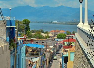 Calle y lomas que parecen terminar en las verdes montañas que rodean el valle oriental. Pero la mirada también tropieza con el inmenso e intenso azul del mar caribe. Y es que caminar por Santiago de Cuba es una experiencia única y muy especial.